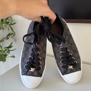 Chic Coach sneakers with signature pattern. Black and white design. Ideal for everyday wear.