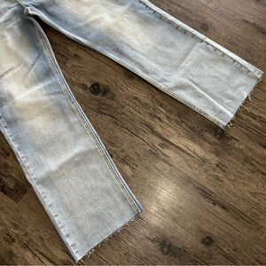 Straight jeans are all the hype right now, these not only have the look! But have stretch and are 90% Cotton & very comfortable. Light blue wash, with raw hem. Ideal for trendy looks! NWT Size 8