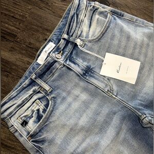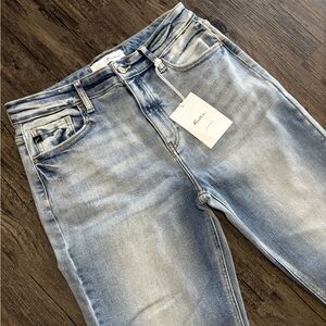 Kancan Light Wash Straight Leg Jeans W/ Raw Hem Soft & Stretchy Size 8