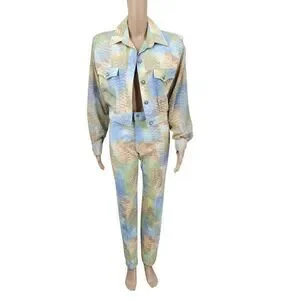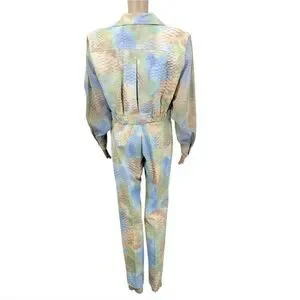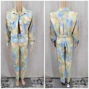 Opal Vintage Denim Abstract Snakeskin Colorful Denim Jacket & Jeans Matching Set