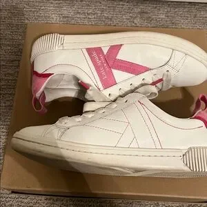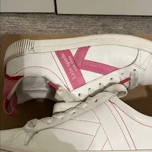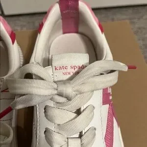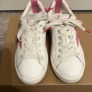 KATE SPADE, K AS IN KATE COURT SNEAKERS WHITE W/PINK ACCENTS SIZE 7