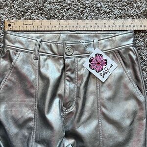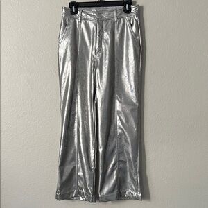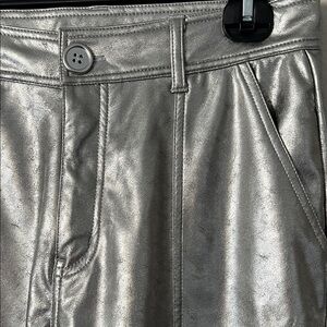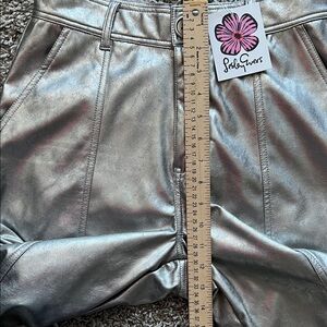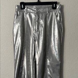NWT Lesley Evers Cheryl Silver Faux Leather Pants in Size S