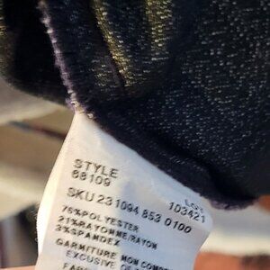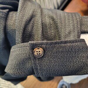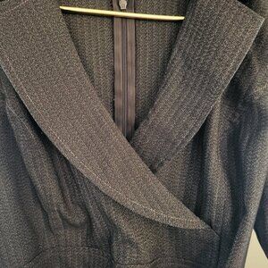 Le Chateau Grey and black short striped belted dress with 3/4 length sleeve nice button accents on sleeves and pockets! Made in Canada and in good condition! Great for work or any event! Smoke free but dog friendly home!