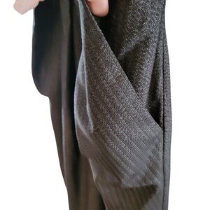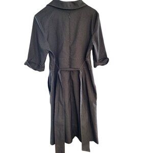 Le Chateau Grey Striped Belted Dress with 3/4 length sleeve and pockets