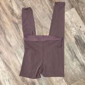 Stylish brown high-waisted leggings. Perfect for workouts or casual wear.