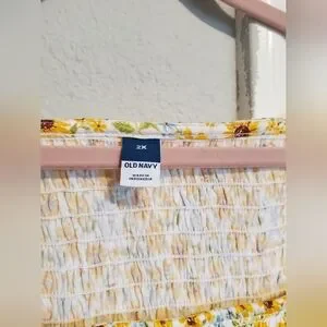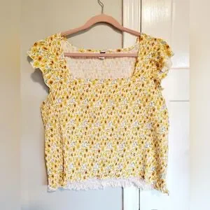 Flutter sleeved, cropped, smocked top with adorable sunflower design from Old Navy. 20" pit to pit, has stretch.