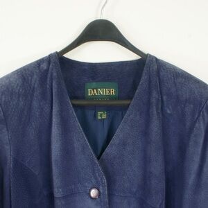 Vintage Danier Blue Suede Leather Button Up Lightweight Jacket