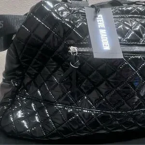 Steve Madden Weekender Black Patent Faux Leather Bag NWT