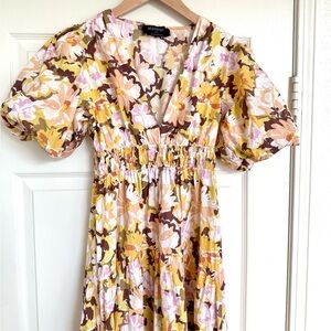 Anthropologie Minkpink Zoey Floral Pleated V Neck Short Sleeve Maxi Dress S