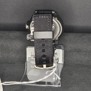 Strap: Durable black nylon fabric strap