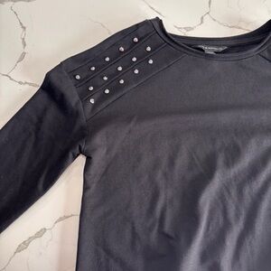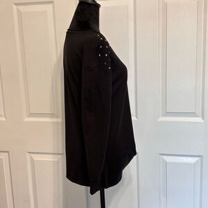 Rock & Republic Women’s Black Studded Twist Knot Hem Sweatshirt Top Size Small
