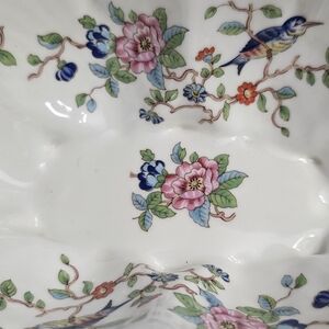 Aynsley Pembroke footed shell dish made of fine English bone china, featuring a design inspired by an 18th-century oriental motif.