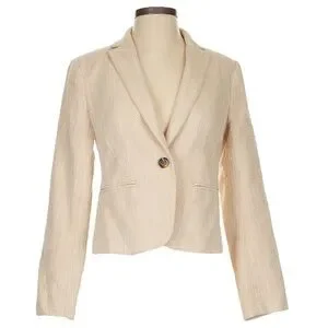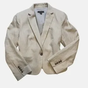 ๐ Ann Taylor Bone Natural Cream Textured Weave Work Blazer Size 8p Petite NWOT
