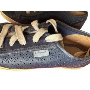 Salvatore Ferragamo Women’s Sneakers Navy Leather Gum Sole Dust Bag Italy 7.5