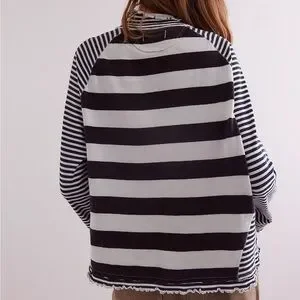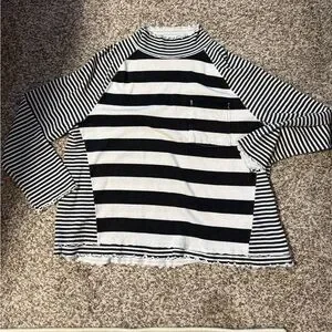 Mint condition! Maybe slight, slight wash wear but otherwise in good condition. Black and white stripe with lettuce hems and neckline. Size XL not really oversized