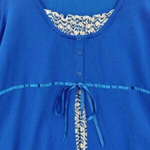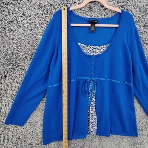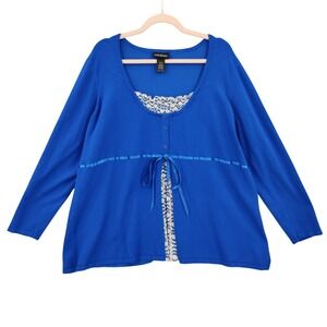 Lane Bryant Womens Cardigan Faux Layered Coquette 26/28 Blue Smocked Ribbon Tie