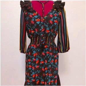 Betsey Johnson New York Vintage 90s Silk Floral Long Sleeve Dress