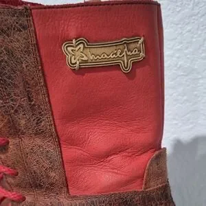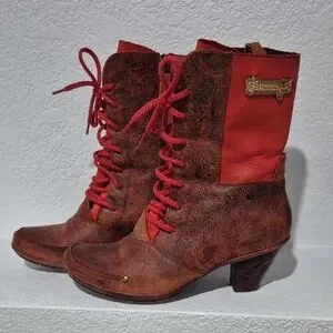Elevate your look with these stylish red and brown lace-up boots from . Perfect for making a statement, these boots offer both comfort and flair.
