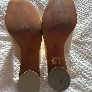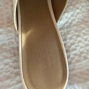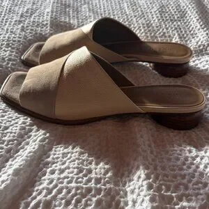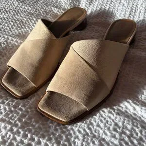 M.Gemi Made in Italy Leather Slide Sandals 42 Beige Square Toe Block Heel Mule