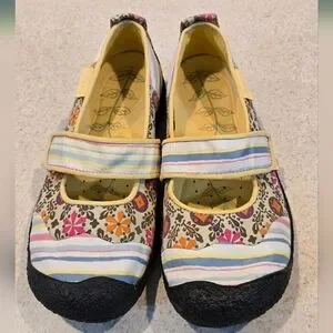 Keen Harvest Mary Jane Flats Multicolor Floral Stripe Canvas
