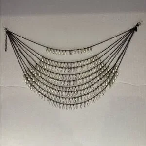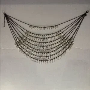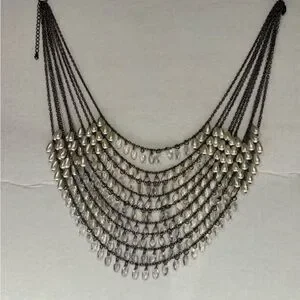 Breathtaking waterfall of silver + white droplet beads. Drapes beautifully. New!