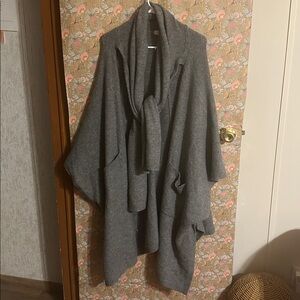 Free People Ellie Scarf Wrap Duster Sweater Kimono Knit Grey Onesize