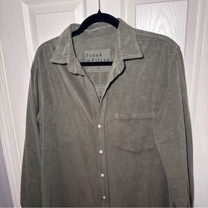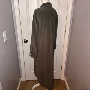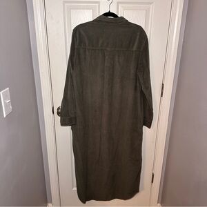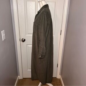 Rory maxi shirt dress from Frank & Eileen in "Forrest" (deep green) color. Button front closure. Single pocket on left chest. Long sleeves. Corduroy fabric. No longer available on website in this colorway.
