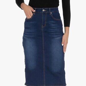 GUANYY High-Waisted Denim Midi Pencil Skirt – XL – Stretch