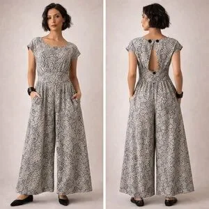 Anthropologie Annie 50 Open Back Wide Leg Drape Jumpsuit L Made in Canada