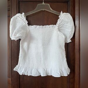 Crisp White Cotton Square Neck Short Puff Sleeve Fitted Torso Shirt Top Blouse