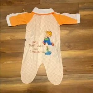 Jack Be Nimble design. Soft vintage feel. Thinner material. Estimated at 3months sizing.
