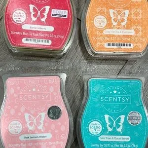 Discover a vibrant collection of Scentsy wax melts. Includes a variety of scents for a delightful fragrance experience. Includes 19 full bars in a variety of floral, fruity, bakery, ocean, and warm scents. All packs are unopened.