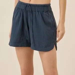 Blue organic cotton shorts by Pact. Never worn! Just didn’t fit the way I was looking for. Super comfy and great for outdoor or indoor activities.