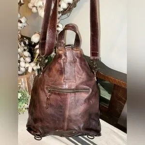 Bed Stu Leather 3 In 1 Delta Backpack Shoulder Bag HandBag Teak Rustic MSRP 345