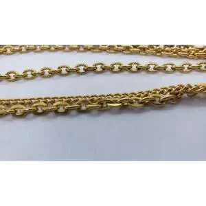 Vtg Pearl Pendant Necklace Tassel Triple Chain Gold Plated 70s Celebrity