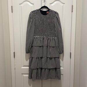 Chic gingham pattern with tiered skirt. Long sleeves for elegant style. Perfect for versatile wear. Worn only 1-2x.