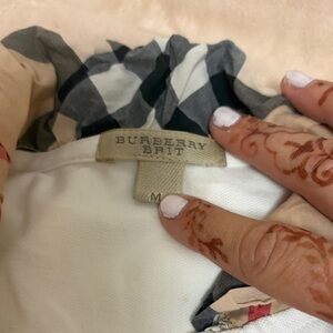 Stylish Burberry polo in off white. In very used condition.