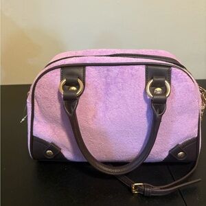 Brand new with tags! This Juicy Couture Heritage Bowler bag is a must-have for any Y2K aesthetic lover. Features a stunning lavender velour body with contrast chocolate brown trim and gold hardware.