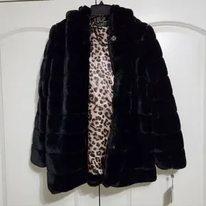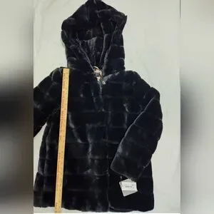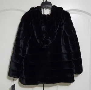LAUNDRY BY SHELLI SEGAL FAUX FUR BLACK COAT With HOOD SIZE XS