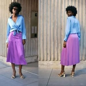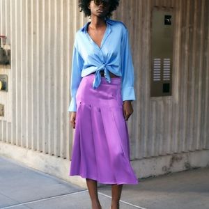 ZARA LIMITED EDITION SATIN EFFECT BOX PLEAT SKIRT