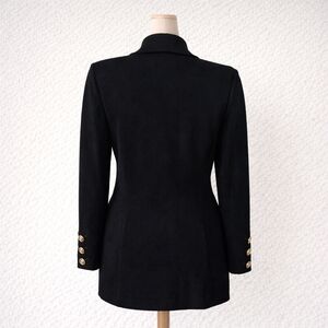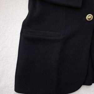 ST. JOHN BASICS Santana Knit Blazer Black Gold Crest Buttons Made In USA Size 12