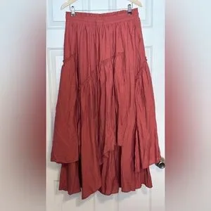 NWOT Scarlett Darkness Renaissance Boho Ruffle Skirt XL Terracotta Rust Red