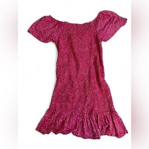 Stunning and feminine Japna midi dress in a vibrant raspberry pink with a delicate white polka dot print. 🌸 This dress features a highly flattering silhouette with a customizable tie-front and ruched bodice that hugs your curves in all the right places!