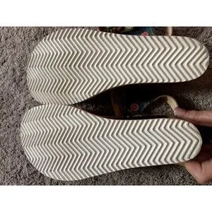Cushioned leather sandals featuring red, green, and purple flower and leaf details, a velcro ankle strap, and a 2.75" wedge heel. Front platform is about 0.75" high. Only worn a couple times. Size EU38.