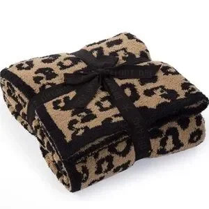 Barefoot Dreams Cozy Chic In the Wild Leopard Throw Blanket Camel black