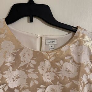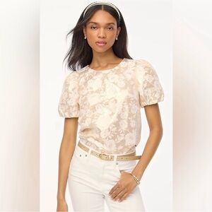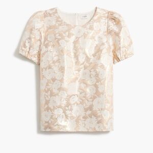 Puff sleeve blouse with floral pattern. Cream and gold metallic, great for holidays and special occasions. Size M