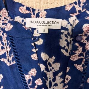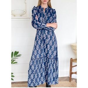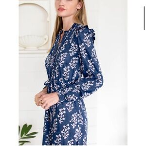 Emerson Fry Navy Floral Long Sleeve Dress Frances 4 Pressed Flowers Small