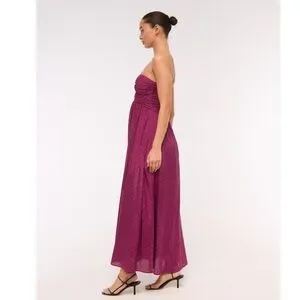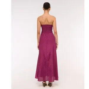 NWT Abercrombie & Fitch Strapless Cutout Maxi Dress in Plum Dot, Size MP