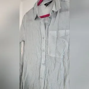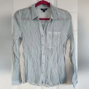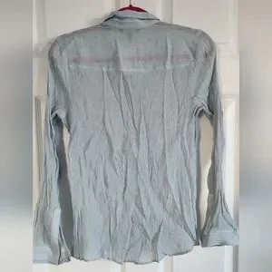 Stylish light blue button-up shirt with a front pocket. Perfect for casual or office wear. Tags removed but never worn!