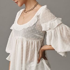 Anthropologie Ruffled Sheer Boho Blouse